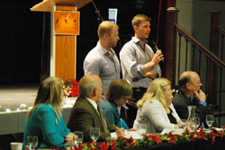 The evening included a Q&A with Seahawks punter Jon Ryan and placekicker Steven Hauschka. SCFOA Hall of Fame Banquet athletes, parents and coaches listen to guest speakers.